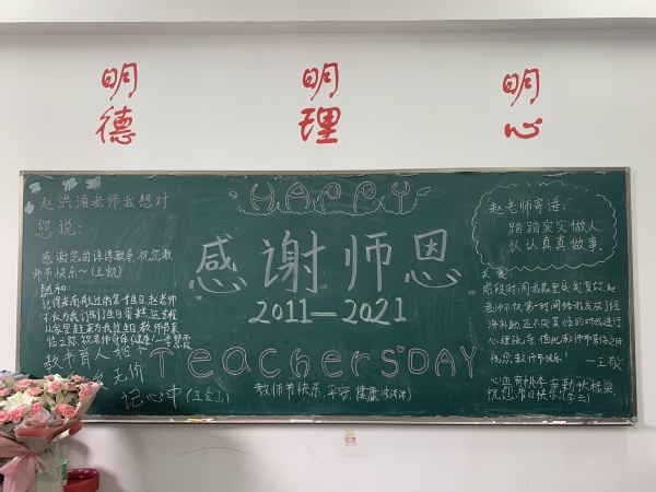 9月10日上午8点,一场特殊的“上课礼”在各个“线上线下课堂”里暖心开展。学生们通过线上线下相结合的方式花式礼送祝福,手绘形象照、线上诗朗诵、惊喜快闪视频、书法……坚持板书教学的赵洪涌教授收到了用粉笔写下的满屏“黑板报”。诸多精彩好“礼”表达同学们对老师循循善教、潜心育人的感激之情。