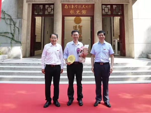 9月10日上午,我校师者·传承第 37 个教师节教师荣休仪式暨新进教师入职仪式在荟萃楼前举行,校党委书记郑永安、校长单忠德为荣休教师一一颁发了纪念奖章。来自电子信息工程学院的郑步生教授为新入职教师代表航空学院张强佩戴校徽。张强带领全体新入职教师进行了庄严的入职宣誓,铿锵的誓言表达他们献身立德树人事业、续写南航发展辉煌的决心.
