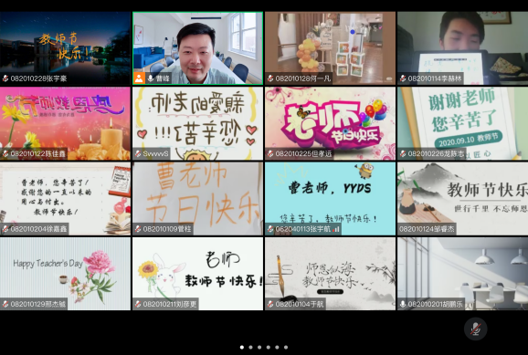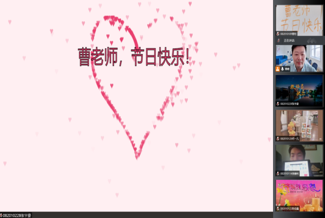 9月10日,同学们用各种形式向上课老师表达节日祝福。2020级学生用代码绘制出心形线,用数学公式和计算机语言为数学分析课程老师曹峰送上真挚祝福,课上,同学们纷纷打开摄像头和麦克风,一张张的祝福卡片在屏幕前涌现:“老师,节日快乐”,“老师,您辛苦了”,“教师节快乐”,“曹老师,YYDS”,同学们的祝福声也此起彼伏,传达出对老师的感念。