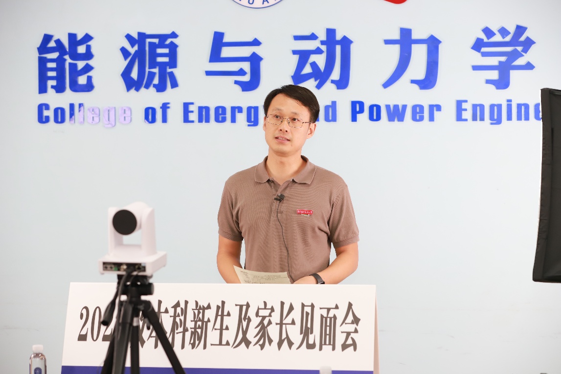 9月16日,能源与动力学院本科2021级新生及家长见面会在A10-500会议室举行,并于线上同步直播。学院党委书记王中叶、院长毛军逵、院党委副书记王霄、副院长张天宏、副院长徐惊雷、副院长刘向雷、副院长赵万忠、各专业负责人、班主任、学院团委书记、本科生辅导员、在校生代表,以及全体2021级本科新生及家长们参加了本次见面会。会议由王霄主持。
