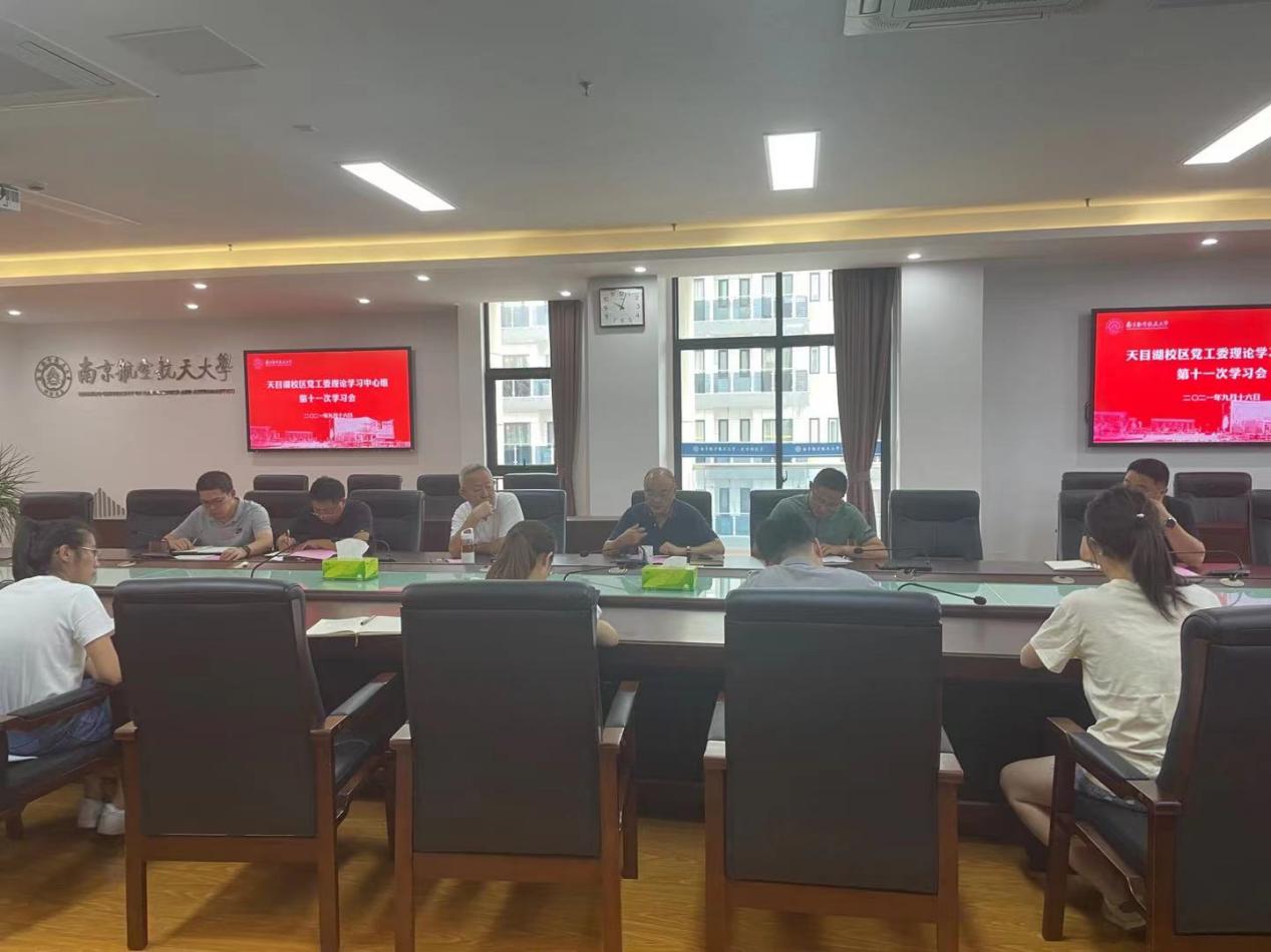 为深入落实校党委党史学习教育工作部署,学习习近平总书记在庆祝中国共产党成立100周年大会上的重要讲话精神,天目湖校区党工委理论学习中心组于9月16日上午在天目湖校区综合服务楼301会议室召开第十一次学习会。会议由天目湖校区党工委书记张新明主持,天目湖校区党工委委员,支部书记、副书记,科级干部,组织员、宣传信息员,第一支部党员参加会议。