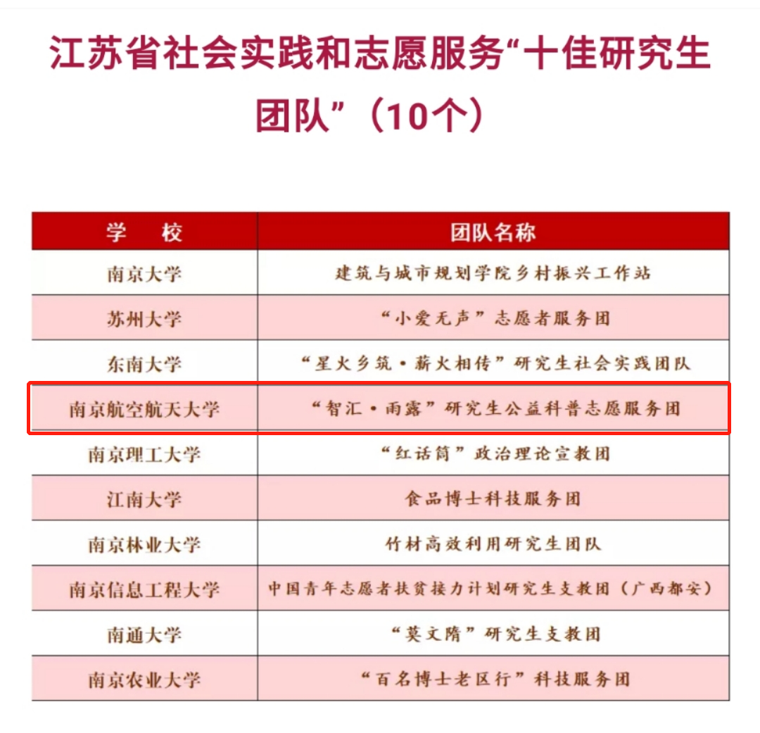 江苏省社会实践和志愿服务“十佳研究生团队”