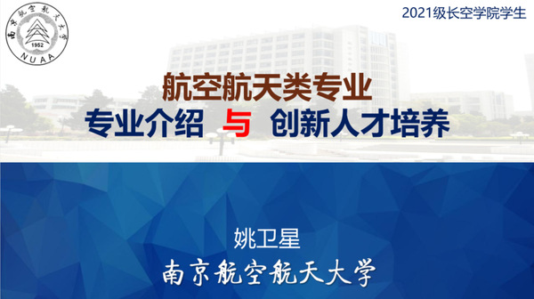 学期伊始,返校在即。为了让长空学院2021级新生更好地了解专业知识,规划学习生活,明确前进方向,学院于9月17日晚上举行新生领航课——专业领航线上交流活动,航空学院教授姚卫星担任主讲人,就航空航天类专业介绍和创新人才培养进行了系统阐述。