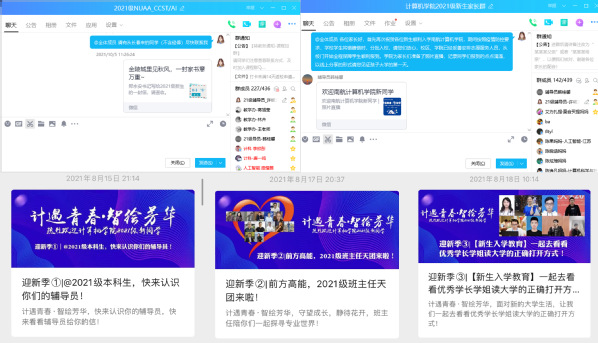 2021级本科生是学院首批入驻天目湖校区的学生,学院高度重视新生入学报到工作,在做好疫情防控的前提下,多方协调、精心筹备。一是深入研讨,通过党政联席会、学生工作例会等专题讨论新生报到工作,于8月上旬形成了学院迎新工作方案、迎新工作宣传方案和新生入学教育方案。二是搭建各类平台,学院组建新生线上交流群和家长线上交流群,及时帮助学生和家长解决问题和疑惑;同时开展了“迎新季”专题宣传工作,全程报道学院迎新工作的筹备、开展情况,学生报到前共计发送7篇专题微信推送。三是精准开展调研,前期,学院面向新生开展了基本情况专项调研,梳理了学生的需求、到校时间等,同时更新了学生基本信息,为后续迎新工作的开展奠定了基础。