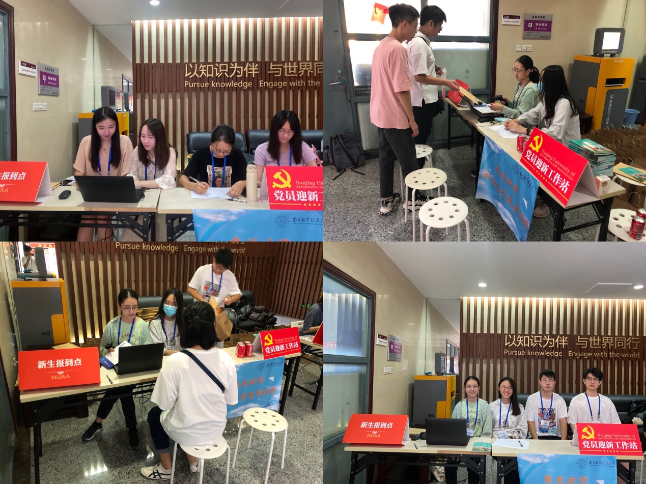 学生党员们积极报名参加迎新志愿工作,在党员迎新工作站为新生提供暖心服务。收取档案资料、发放迎新礼物、帮助拍照留念,随处可见他们忙碌的身影。