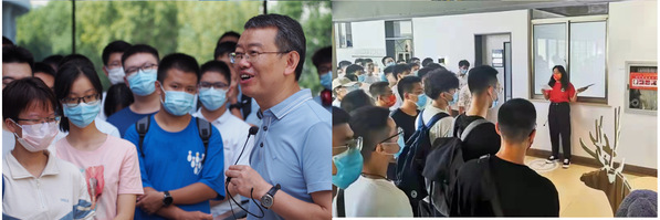 报到期间,学院严格落实防疫要求,在各个环节帮助新生顺利入住寝室,完成报到流程,特别设置“长空加油站”记录每位新生与南航的第一张合影,设立“长空留声亭”留存每位新生初到长空的感受和对未来的期望;举办院楼开放日,设立“长空讲解团”,带领新生们实地感受学院智慧教育空间及其中蕴含的南航精神和长空文化。学院常务副院长蒋彦龙作为01号讲解员为新生介绍了“长空”的深刻内涵和智慧教育空间,勉励长空学子勤学上进、追求卓越,锤炼意志、砥砺坚韧,成为实现航空报国理想的践行者、奋进者。