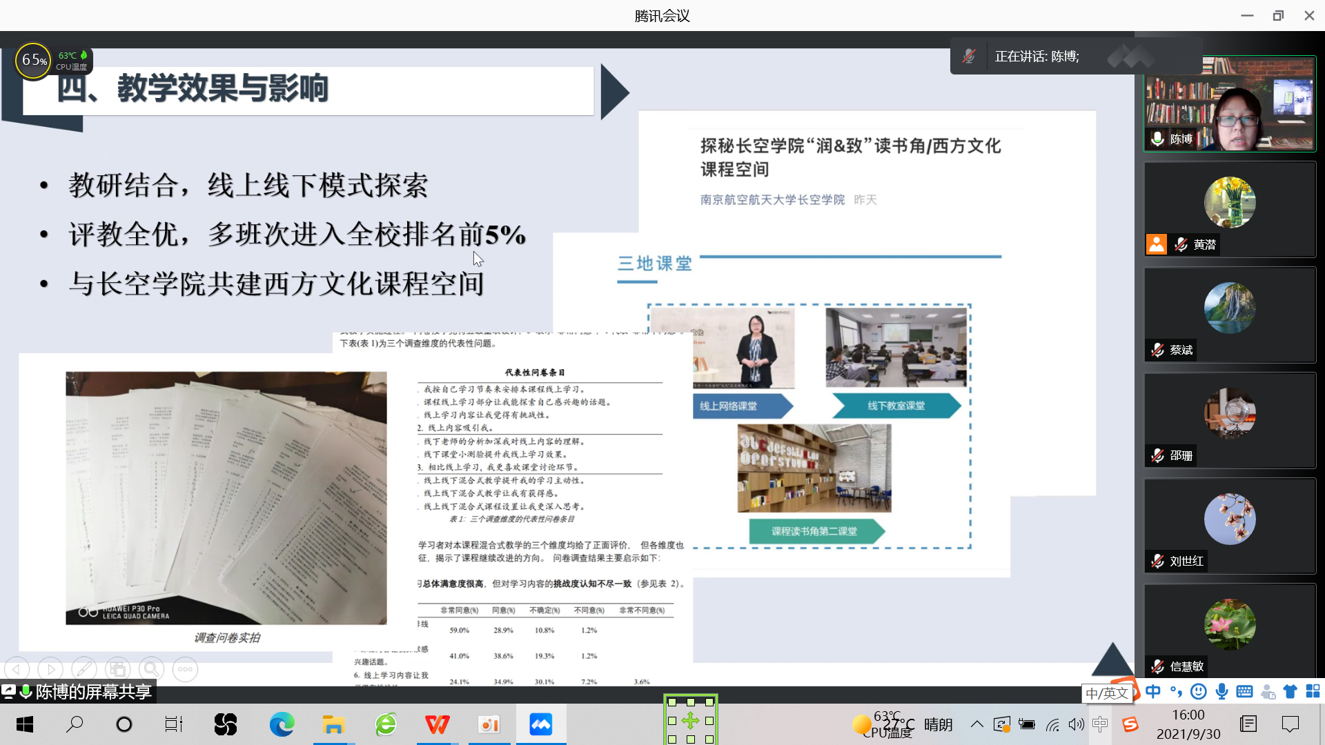 各项目主持人一一结合PPT和课程网站进行了汇报,各项目组均按照立项任务进行了建设,多个项目取得了省级及以上立项、获奖等一系列成果,评教优秀率高。
