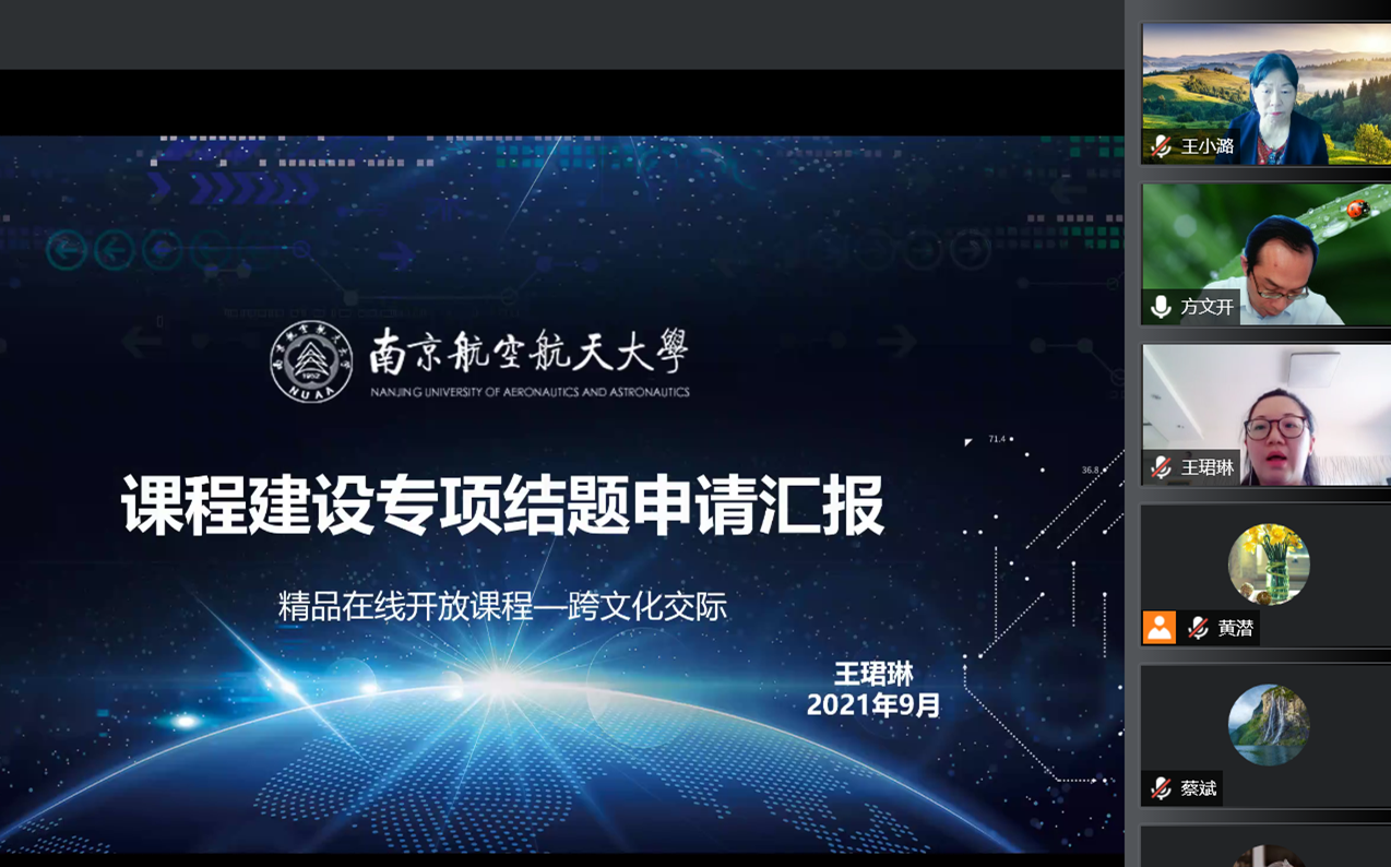 近日,外国语学院在腾讯会议组织2019年校级教育教学改革研究项目(精品课程建设专项)以及2020年校级线上线下混合式课程建设专项项目线上答辩验收。验收会由副院长徐以中教授主持,邀请了江南大学方文开教授、浙江大学王小潞教授、河海大学蔡斌教授作为验收专家。