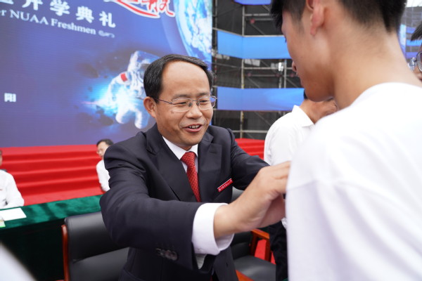 胡建兴代表校友讲话。他回顾了自己及家人在南航的求学历程和毕业后投身航空工业的工作经历,勉励全体新生葆有南航人的光荣感、厚植南航人的使命感、建立南航人的自信心,今天认真学习,明天为国奋斗,为国家发展和国防事业贡献力量。