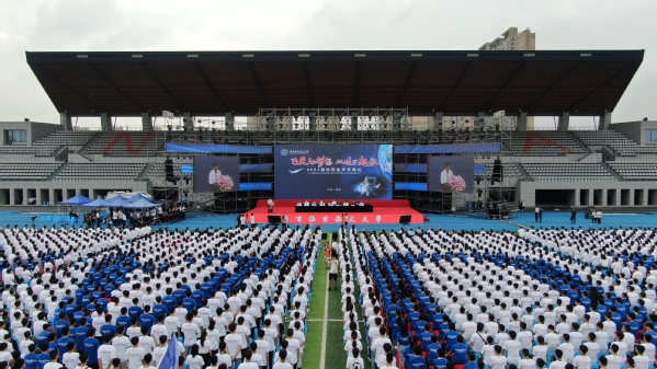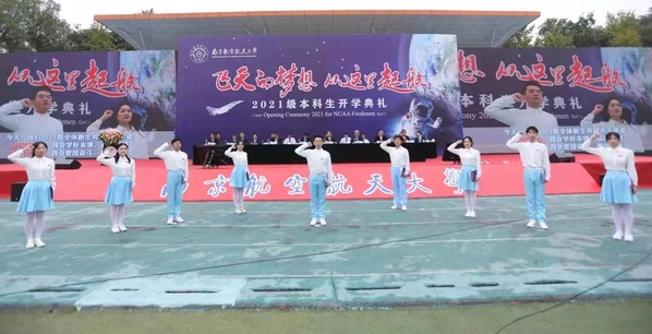 10月14日,“飞天的梦想,从这里起航”2021级本科生开学典礼分别在我校将军路校区和天目湖校区举行。校党委书记郑永安,校长单忠德,副校长黄志球,校党委副书记、纪委书记杭育新,副校长姜斌,校党委副书记刘宇雷,校长助理黄炳辉,党委常委、组织部部长李遥,职能部处负责人、各学院领导及来自29个国家和全国各地近5000名本科新生共同参加了典礼。航空工业贵州飞机有限责任公司总设计师、80级校友胡建兴应邀参加典礼,溧阳市市委副书记、市长叶明华,副市长钱栋代表溧阳市委市政府在天目湖校区参加典礼。学校师生、校友、家长共3万余人观看了网络直播,开学典礼由校党委副书记刘宇雷主持。