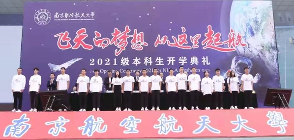 2021级新生代表带来了原创诗朗诵《学好本领,强国有我》,表达了他们进入南航的欣喜和期待,许下了学好本领、追求卓越,爱国奋斗、赓续荣光的承诺,并发出了请党放心,时代青年志在远方;强国有我,南航学子不负众望的铮铮誓言。