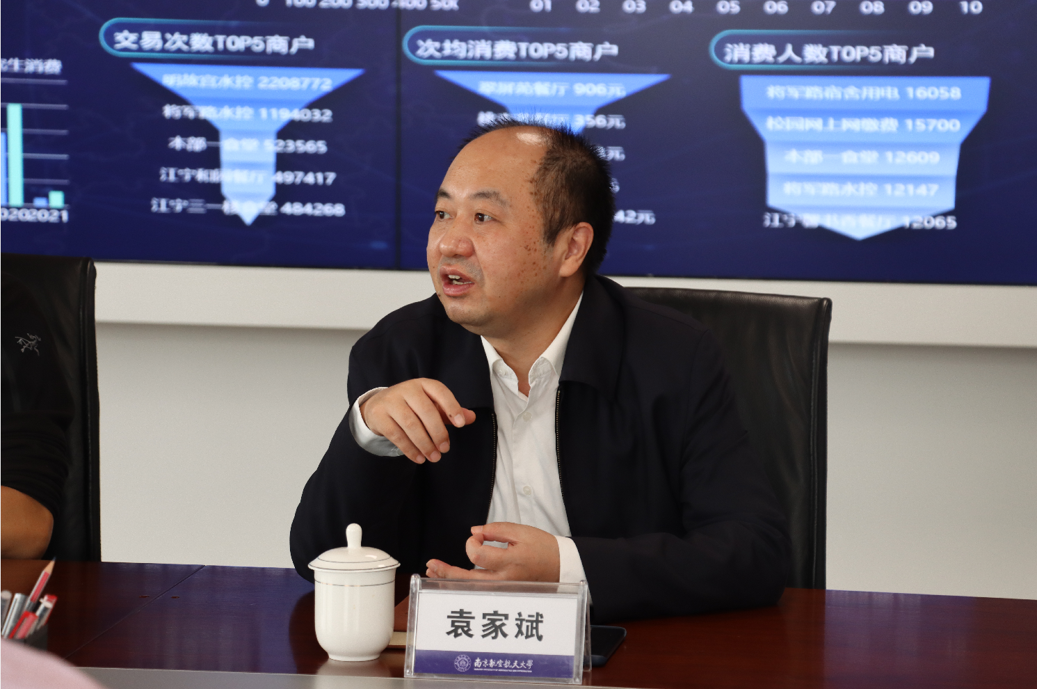 首先袁家斌对南京高等职业技术学校一行表示热烈的欢迎,并简要讲述了我校的校园一卡通智能支付系统的建设成果。