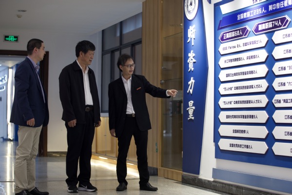 会前,胡建兴在学院领导的陪同下参观了学院文化展示空间和部分实验室,对实验室的建设和管理提出了宝贵建议。