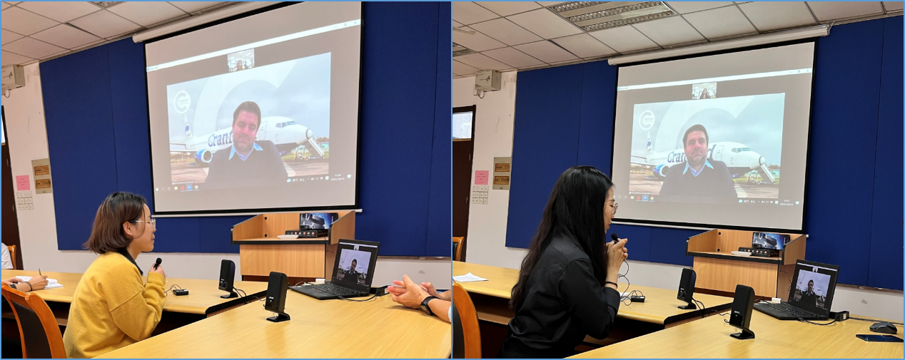 随后,2021级30名学生向克大老师进行了自我介绍,并针对自己的专业背景和研究方向与英方老师进行了沟通交流,充分体现了南航学子谦虚求学的精神风貌。