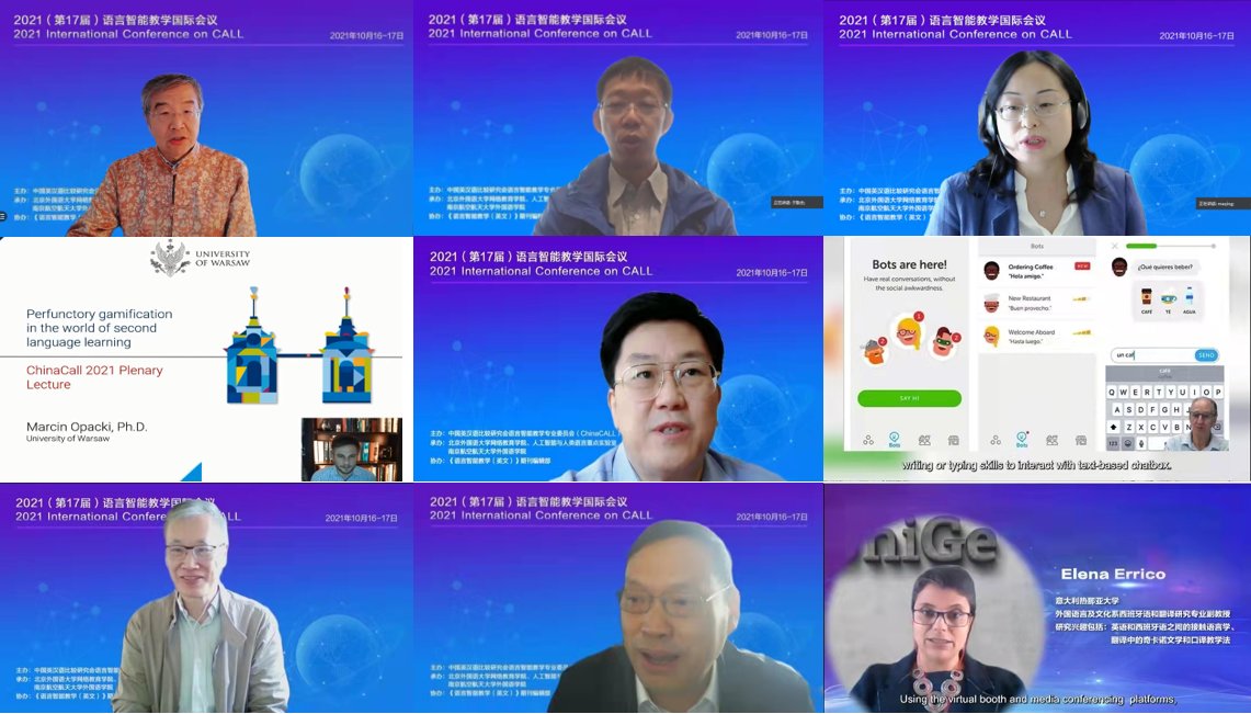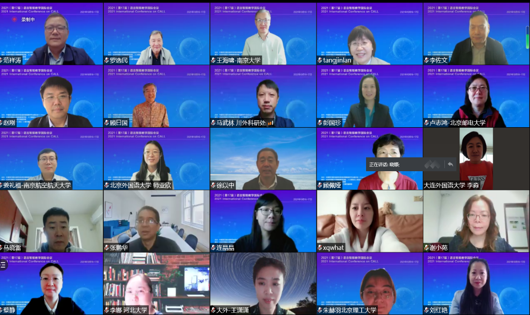 10月16-17日,2021年(第17届)语言智能教学国际会议圆满举行。本届会议由中国英汉语比较研究会语言智能教学专业委员会主办,北京外国语大学网络教育学院、人工智能与人类语言重点实验室、南京航空航天大学外国语学院联合承办。大会围绕“教育技术与立德树人”主题,采取腾讯会议和直播相结合,包括“专家主旨发言”、“分会场发言”和“专题论坛”三个部分,实时参与人数3.5万+,微博话题阅读量14.2万,微博内容阅读量8.1万。