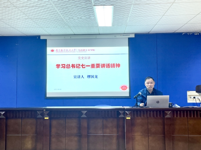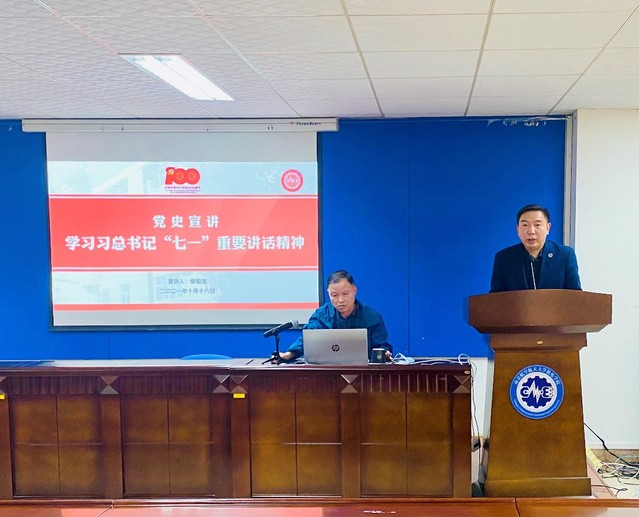 10月18日,机电学院邀请学校“党史学习教育师生宣讲团”成员缪国龙副教授,围绕“七一”重要讲话精神开展宣讲,报告会由机电学院院长傅玉灿主持,学院党委理论中心组成员、师生党员代表和积极分子、发展对象代表参加。