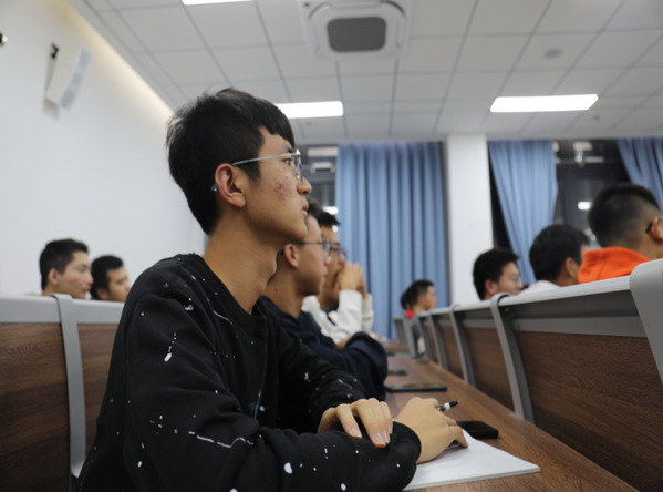 交流互动环节,蒋绍新老师对同学们提出的专业学习、未来规划、行业发展等方面的问题做出了详尽的解答,并向踊跃发言的同学赠送了专业书籍。“找准定位,规划目标,脚踏实地,持之以恒”,蒋绍新老师以一句自己的工作格言结束了本场讲座。