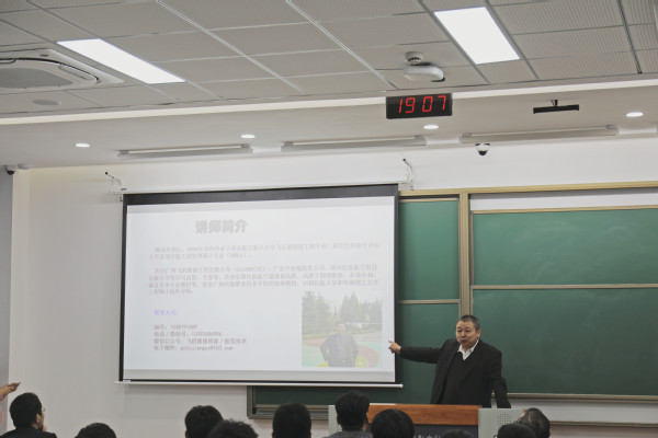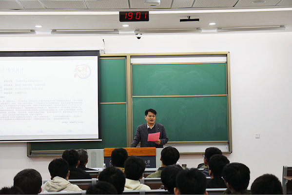 介绍环节,司海青教授对蒋绍兴老师的到来表示热烈欢迎。据悉,主讲嘉宾蒋绍新是第二次应邀返回母校,以“学长”的方式用自己的成长故事为学弟学妹们带来前行的力量。同时,司海青教授对学院第一届民航机务工程专业学生给予殷切希望,希望同学们能肩负起学院首批机务学子的责任,珍惜大学时光,怀揣梦想,奋斗青春,使自己的人生更加熠熠生辉。