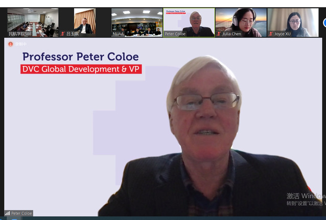 Peter Coloe表示,皇家墨尔本理工大学与南京航空航天大学有着多层次、宽领域的合作伙伴关系,他非常感谢我校在疫情特殊时期建立的“海外学习中心”,帮助无法前往澳洲学习的同学完成学业。