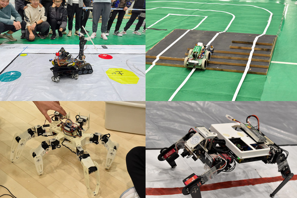 接下来,主持人介绍比赛规则和流程后,比赛正式开始。本次比赛共收到全校40余支队伍报名,历时5个月,经过作品申报、技术评审、中期答辩等环节,最终共有28支团队入围决赛。比赛项目共包括1:10无人车多车交互、机器人跳高跳远、机器人分拣搬运、医疗服务机器人、机器人武术综合型单打对抗、机器人越野、机器人交叉足、多足仿生机器人、自主创新设计等9个类别。最终评选出一等奖10项、二等奖7项和三等奖5项。