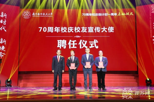 为迎接70周年校庆,南航将聘请一批校友担任宣传大使,展示母校发展成就,助力新时代学校跨越发展。现场举行了70周年校庆首批校友宣传大使聘任仪式,校长单忠德为96级研究生校友,国家重点直升机型号总设计师、中国直升机设计研究所总设计师邓景辉,84级校友、“鲲龙”AG600总设计师、中航通飞华南飞机工业有限公司总工程师黄领才,93级校友、“杰出工程师奖”获得者、奇安信科技集团股份有限公司总裁吴云坤,颁发70周年校庆校友宣传大使聘书。