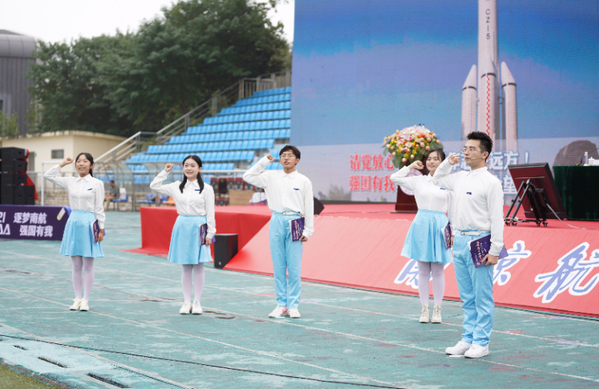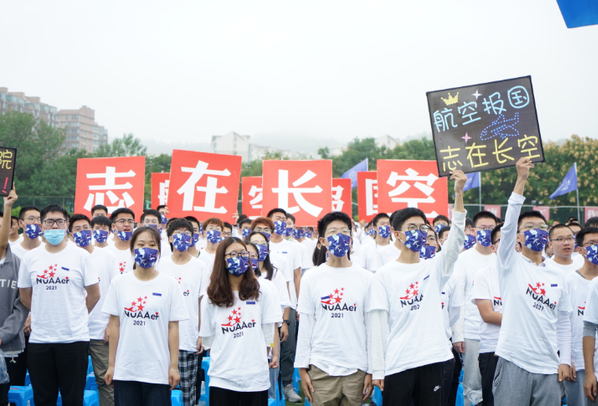 现场,新生代表带来原创诗朗诵《学好本领,强国有我》——“何其有幸,我的少年时代,能见证‘神舟’飞天、‘北斗’指路;‘天问’探火、‘天宫’对接……百年大党恰是风华正茂,少年中国欣逢中国少年!”在字字铿锵,满怀深情的朗诵中,2021级新生全体起立,“请党放心,时代青年志在远方!强国有我,南航学子不负众望!” 充满力量的铮铮誓言响彻天空。
