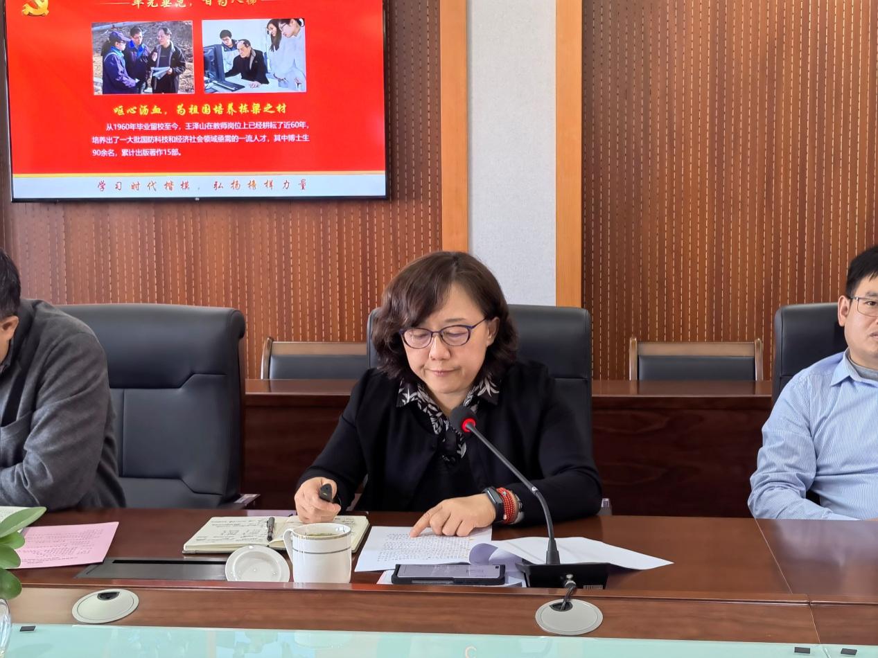 刘健荣以“学习时代楷模 弘扬榜样力量”为题,和大家分享了王泽山、刘永坦同志的先进事迹。从“坚守初心,勇但使命”、“矢志创新,勇攀高峰”、“率先垂范,甘为人梯”、“淡泊名利,从业为民”四个方面,介绍了王泽山同志用64年时间坐热基础科研的“冷板凳”,为我国国防科技事业作出卓越贡献。从“心有大我,忠诚报国”、“牢筑海防,守护边疆”、“诲人不倦,立身育才”三个方面介绍了刘永坦同志致力于我国海防科技事业40年,率领团队全面自主创新,使我国新体制雷达核心技术“领跑”世界,为加快建设海洋强国作出突出贡献。号召大家学习楷模精神、汲取前行力量,继续传承南航人负重奋进、志在超越的精神,勇担历史新使命、接续奋斗开新局,为教育强国、科技强国、制造强国、网络强国建设贡献更大的南航智慧和南航力量。