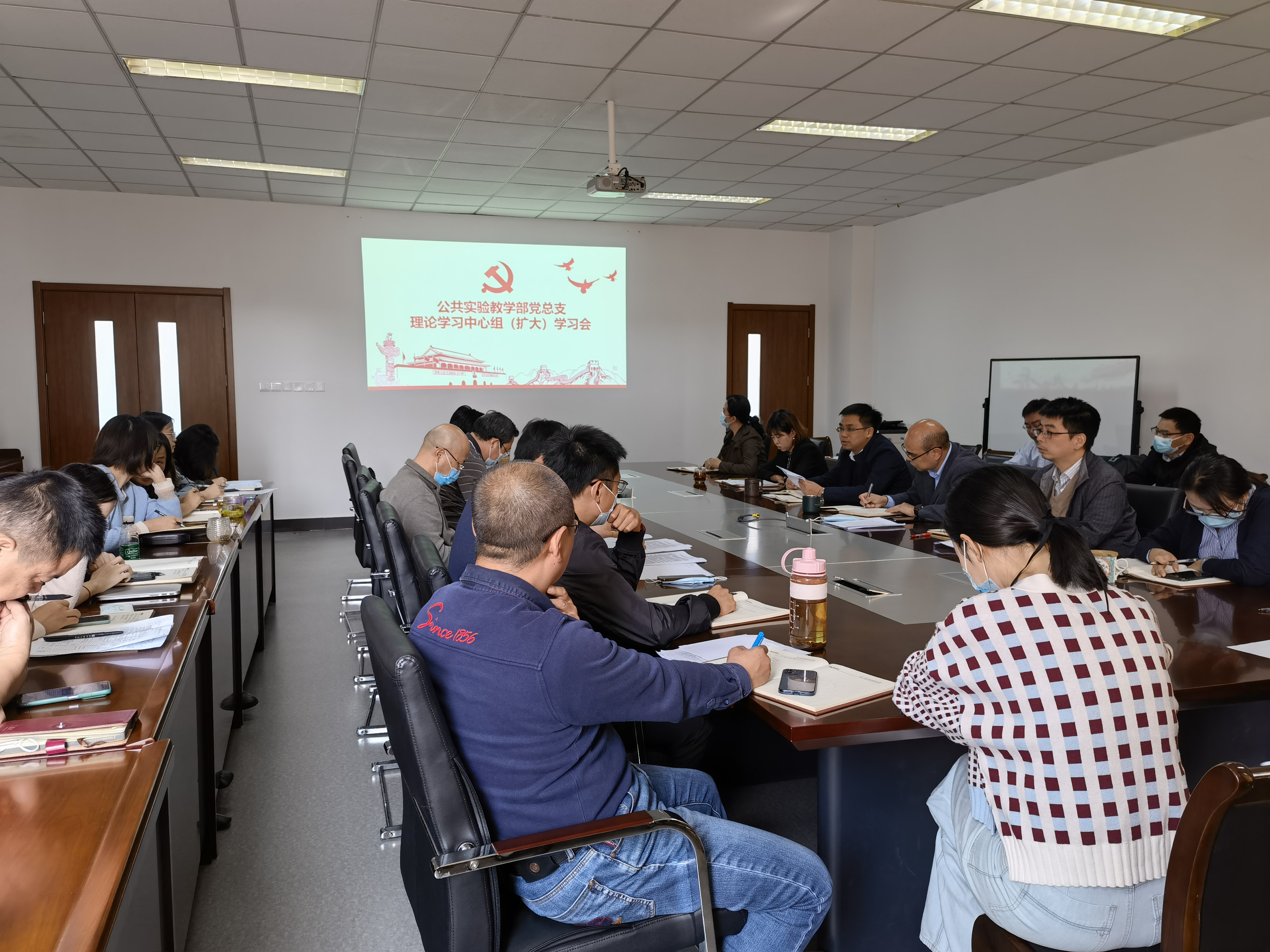 2021年10月29日,公共实验教学部党总支举行理论学习中心组(扩大)学习会。教学部领导班子、党总支委员、各中心(室)主任、党支部书记及机关全体同志参加了学习会。会议由党总支书记张庆主持。