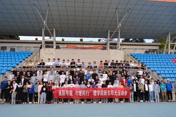 为倡导积极健康校园生活,帮助全院学生尤其是新生调适身心健康,快速适应大学生活,理学院举办“健康身心,向上向学”系列文体活动。10月31日,“强国有我 与理同行”新生阳光运动会的举行,为系列活动拉开序幕。学院2021级新生和辅导员邢临川,刘金哲,陈越共同参加运动会。