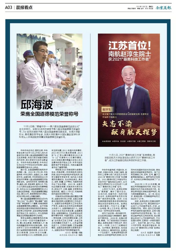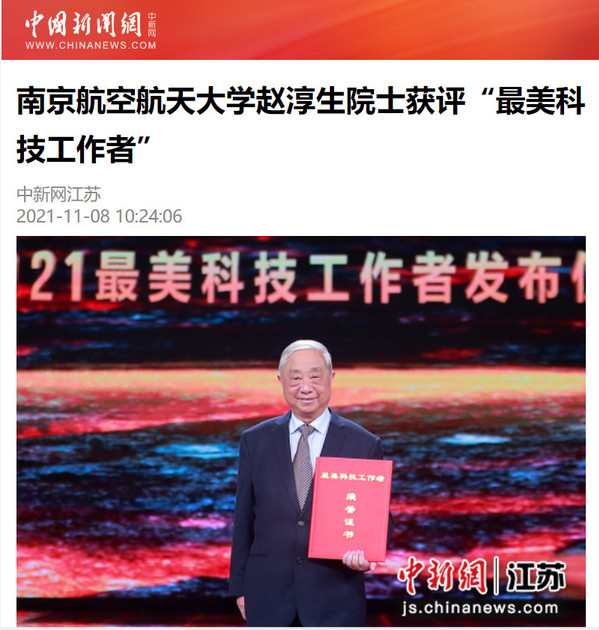 南京晨报丨江苏首位!南航赵淳生院士获2021“最美科技工作者”