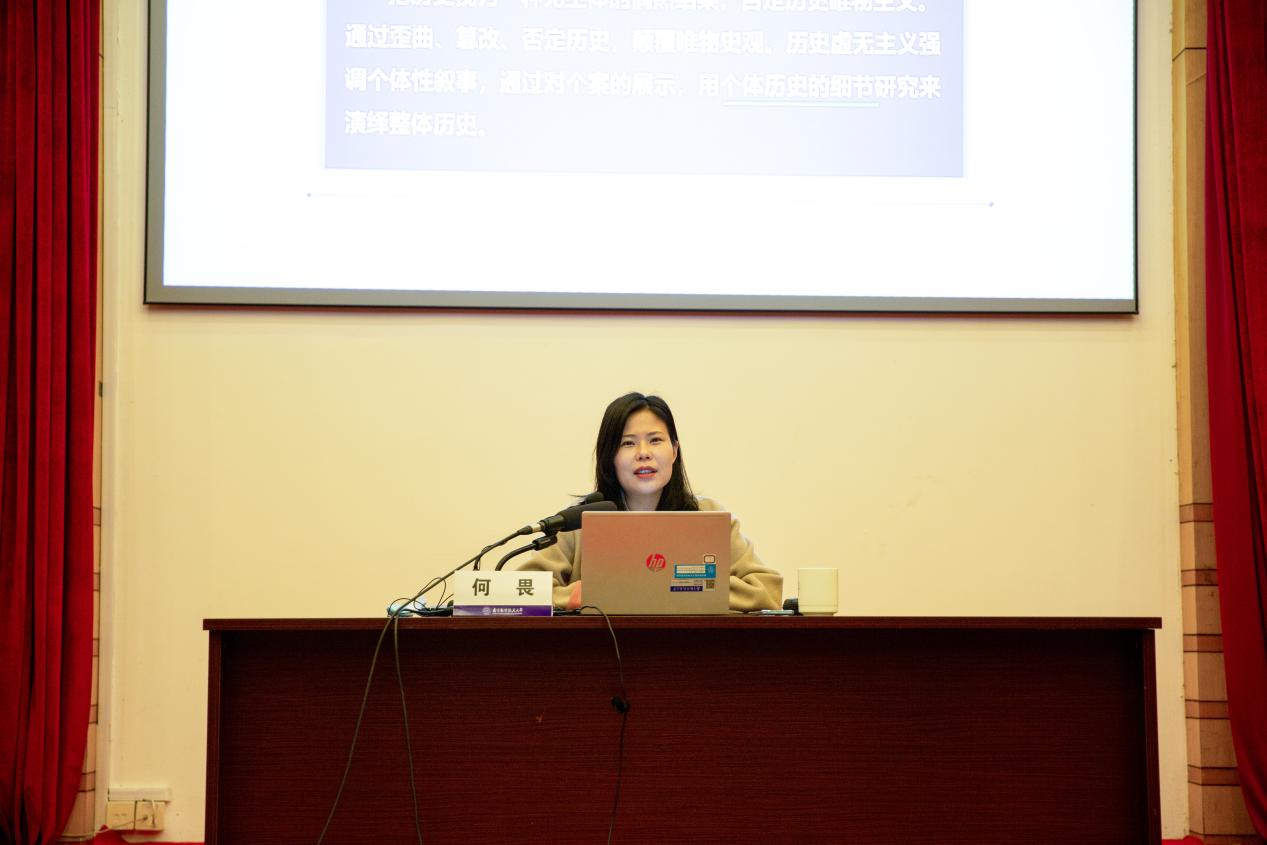 第二场培训由马克思主义学院副院长何畏带来《社会思潮与国家意识形态安全》讲座,她从当前中国社会思潮、建设社会主义文化强国、用社会主义核心价值观引领社会思潮三个方面为我们解读了如何努力提高马克思主义素养、自觉抵制错误思潮,以生动形象、喜闻乐见的形式阐述了为什么要建设社会主义核心价值体系和核心价值观,如何用社会主义核心价值观引领社会思潮,将经典案例和知识点结合起来,循循善诱,为同学们的正确历史观的建立做出重要指引。