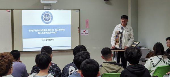 为增强各班级、团支部之间的交流与互动,切实提升班长与团支部书记的工作能力,并对年级近期的事务性工作做出安排,10月28日晚,机电学院2020级本科年级召开本学期第三次班长、团支部书记工作会议。会议由2020级本科生辅导员戚昊主持,2020级本科生全体班长、团支书参加会议。