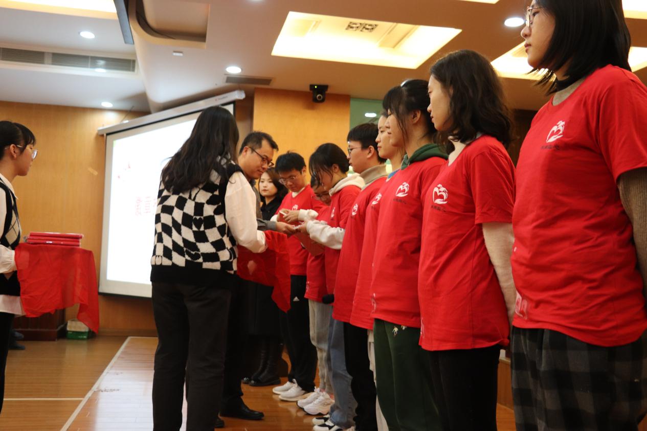 分享会的最后,校团委副书记庞依达老师为淬炼红心的志愿者颁发徽章,希望同学们继续坚定理想,踏实学习,主动在基层淬炼自我。人文学院党委副书记尹春苹老师寄语新生,希望同学们能够夯实专业基础,关注国家发展,在未来能够主动将自己的所学投入到基层和社会发展中去。