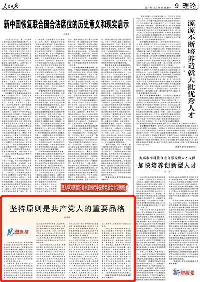 11月15日出版的《人民日报》在第09版刊发了我校党委副书记、纪委书记杭育新的理论文章《坚持原则是共产党人的重要品格》,现将全文转发如下: