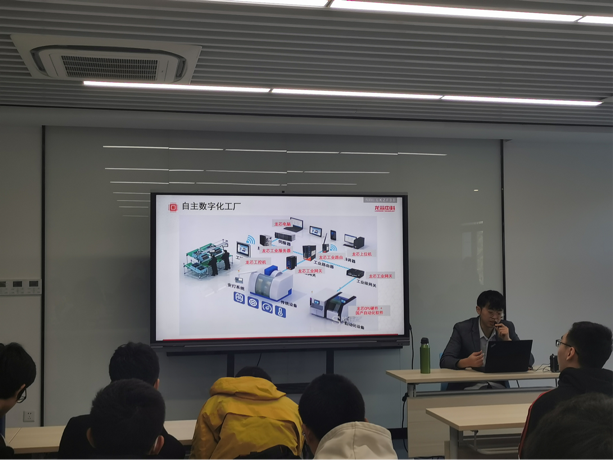 龙芯中科南京子公司副总经理吴少刚介绍了龙芯中科技术路线和自主创新发展成果、行业应用和产业生态,传达了“为人民做龙芯”的精神,鼓励并欢迎同学们加入祖国的造芯事业,为保障国家信息化建设,发展核心技术助力。通过吴少刚副总经理的介绍,同学们从历史历程、发展路线、产品情况、应用领域、文化建设等多方面对龙芯中科有了全新的理解,感受并体验到了国产龙芯CPU的先进和强大。