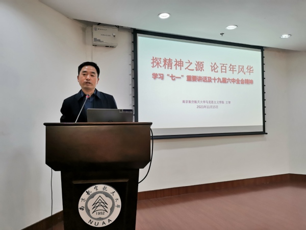 11月15日,图书馆在明故宫校区四楼报告厅举行学习习近平总书记“七一”重要讲话及十九届六中全会精神宣讲报告会。江苏省委宣讲团成员、南京航空航天大学马克思主义学院教授王智作专题宣讲报告。报告会由党总支书记杨名大主持,图书馆全体馆员参加。