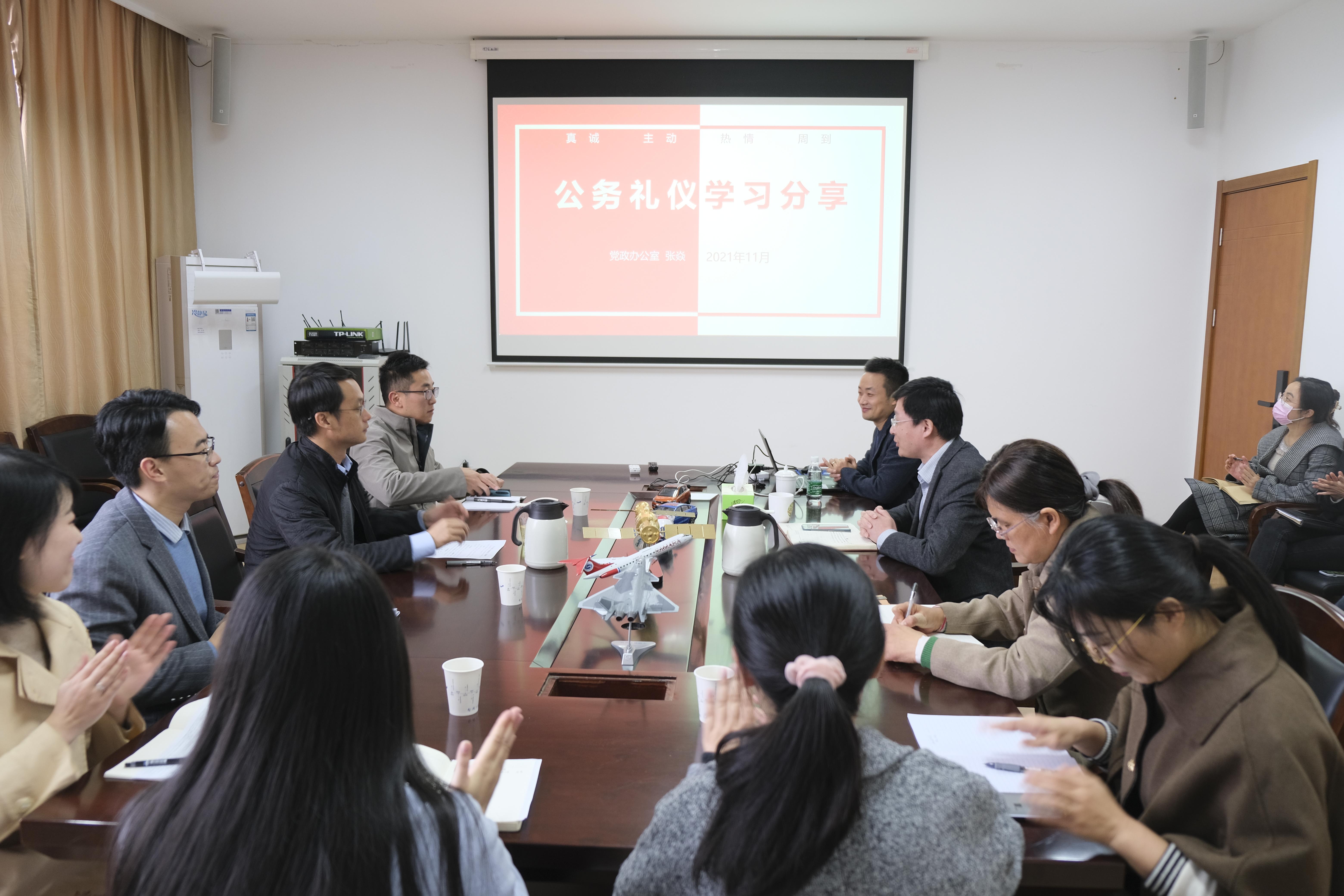 11月17日下午,能源与动力学院在A10-545会议室组织开展“能动微讲堂”第一期活动,邀请学校党政办公室副主任张焱作公务礼仪培训,能源与动力学院党委书记王中叶、机关人员及辅导员共同参与活动。活动由能源与动力学院党政办主任王成军主持。