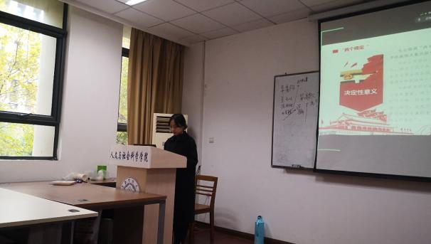 徐睿秋以 “继往开来,不忘初心” 为主题,分享了十九届六中全会的内容。这次会议通过的《决议》是党的历史上第三个历史决议,深刻总结我们党一百年来团结带领人民从胜利走向胜利的伟大历程,我们党一百年来从小到大、从弱到强的成长历程,我们党一百年来加强自身建设、推进自我革命的伟大实践。她与大家分享了十九届六中全会中所提到的全过程民主、中国保持经济快速发展秘诀、文化自信、推进共同富裕等方面的内容。最后,她表示我们都应不忘初心,继往开来,在以习近平同志为核心的党中央坚强领导下,坚持好、运用好、发扬好宝贵经验,创造中国奇迹。