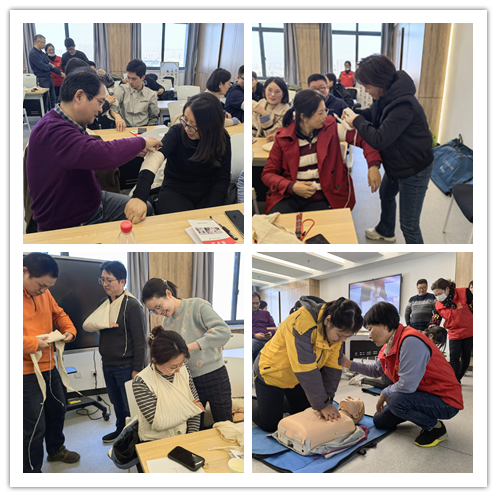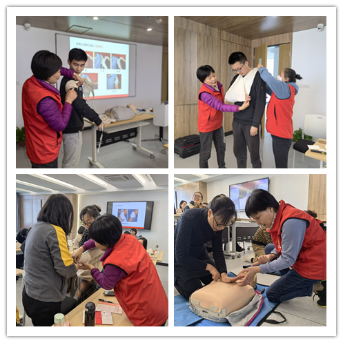 讲解示范结束后,学员们分组对“止血包扎”和“心肺复苏”进行了模拟练习。通过操作人体模型、现场提问等方式进一步巩固了所学知识,掌握了现场急救的基本技能。