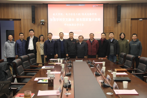 电子信息工程学院/集成电路学院常务副院长潘时龙在发言中指出寻求的目标是建设具有空间特色的世界一流电子信息学院,空间特色是制胜法宝。 学科交叉的理念是 空天信息化、信息空天化,将来我们要以空天信息为抓手,和航天学院共同探讨依赖空天发展信息。学院副院长刘伟强在发言中指出深空探测是解决人类重大挑战和需求的典型学科交叉,学院在人才培养方面先行一步,现有多门交叉融合学科可以应用到航天工程。新成立的集成电路学院可以有效实现关键信息的自主可控,未来也会广泛应用到航空器、航天器上。在自由交流环节,王成华、柳稼航、郁丰、路元刚等教授积极发言。