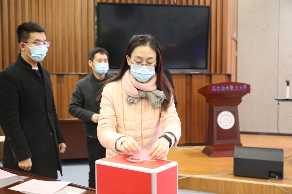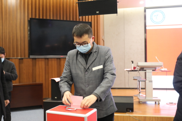 司海青宣读《选举办法》,并介绍通用航空与飞行学院第一届工会委员会委员候选人情况。在总监票人李耀堂同志、监票人濮天梅同志的监督下,大会投票选举产生通用航空与飞行学院第一届工会委员会委员5名:牛璐璐、周贞琪、徐小玉、蔡中长、魏慧冬。