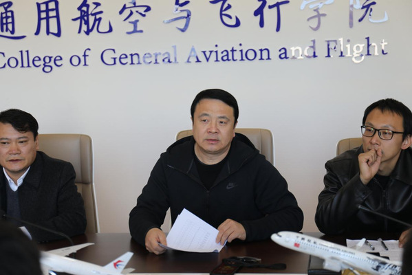 2021年11月24日,通用航空与飞行学院召开2021年全国高校模拟飞行锦标赛赛前动员会。学院党委书记高健、学院党委副书记魏慧冬、副院长司海青、学院团委书记范伟、学院教学与训练办公室主任周贞琪出席动员会,动员会由辅导员吴泊鋆主持。