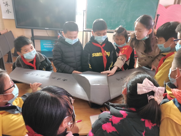 光华东街小学四(1)班韦奕鸿说:“大哥哥大姐姐给我们带来了一堂不一样的科普课,我也是第一次见到飞机模型,听完今天的课,我终于知道了飞机为什么能飞,希望以后我也能学着造飞机。”