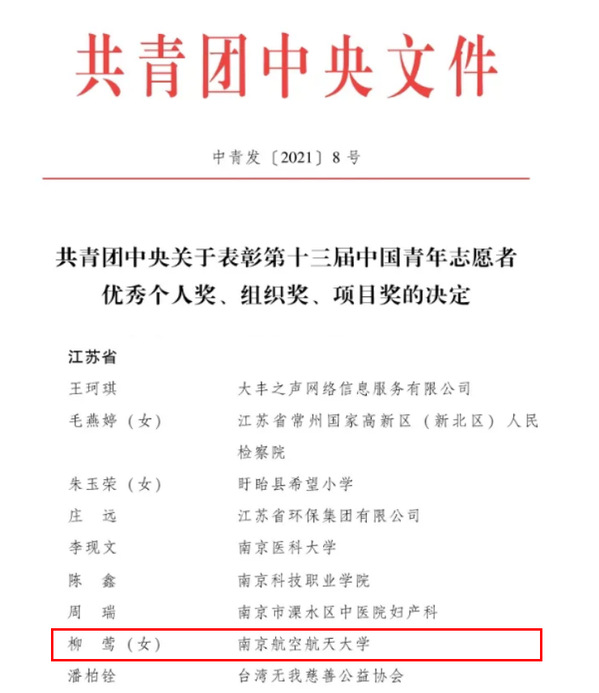 近日,共青团中央、中国青年志愿者协会联合开展第十三届中国青年志愿者优秀组织个人奖评选活动,经过个人申报、单位推荐、省级推荐提名、评委会评选、社会公示等环节,我校第21届研究生支教团成员、经济与管理学院研究生柳莺荣获第十三届“中国青年志愿者优秀个人奖”。