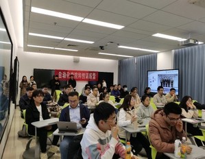 挑战杯科创竞赛队长王明月和博士研究生鲍旭聪分别介绍了参与科创竞赛和创新创业的成功案例。王明月分享了从天宫杯立项到第九届天宫杯勇夺特等奖再到挑战杯参赛的历程,详细阐述了科创竞赛在学生综合素质培养过程中发挥的重要作用;鲍旭聪从当下的创业背景、公司情况、科研经历等部分展开叙述,并分享了路演展示。此外,团队还邀请到大学生创业孵化中心教师朱成明为同学们详细解读了国家以及学校对大学生的创业鼓励政策。