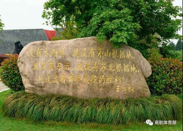 纪念馆门口的石壁上刻着王必成将军的题词:“没有水西村,就没有茅山根据地,就没有东进,就没有苏北根据地,也就没有黄桥战役的胜利!”充分说明了新四军水西指挥部的重要历史作用。