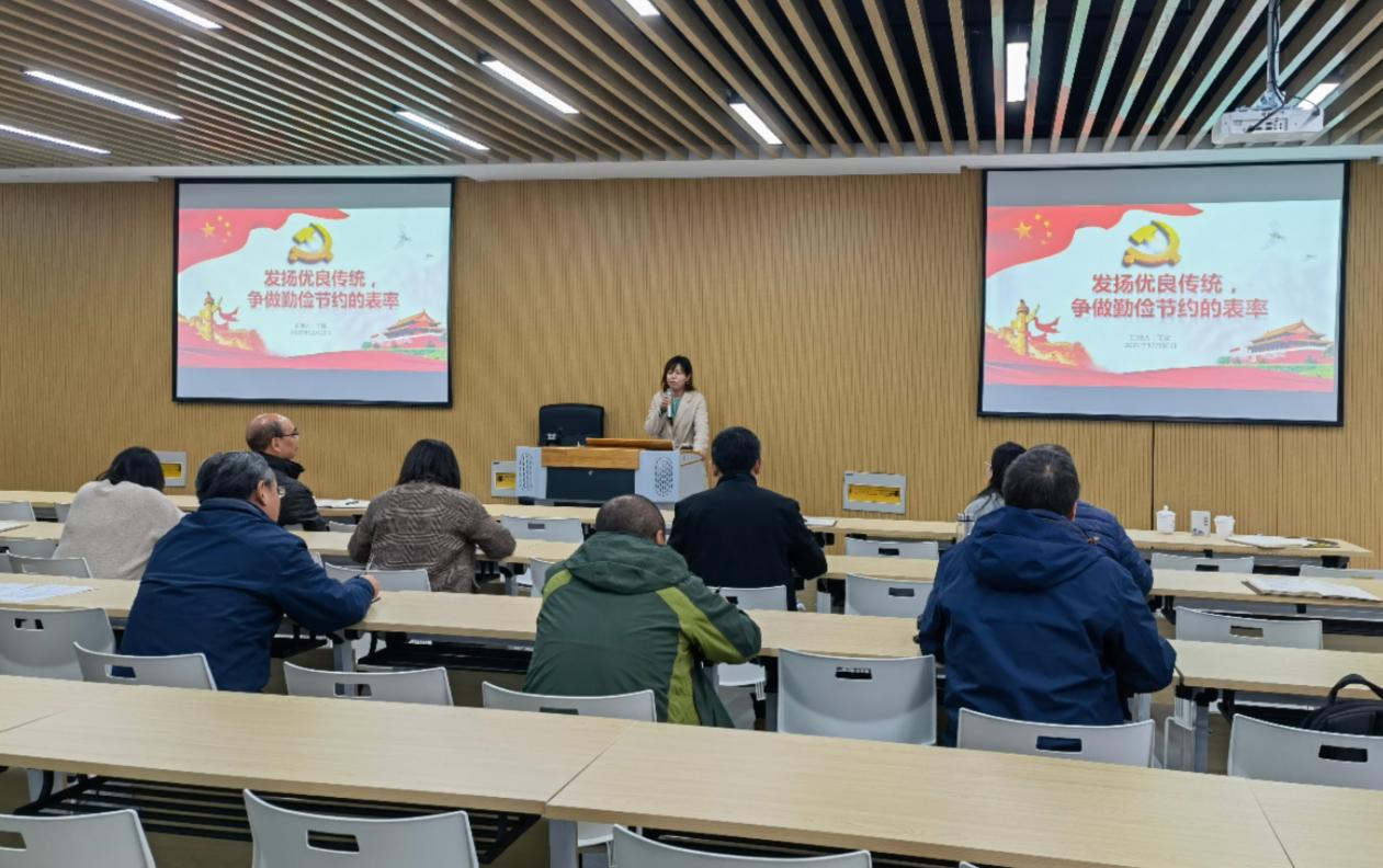 丁岚以《发扬优良传统,争做勤俭节约的表率》为题,从“勤俭节约是中华民族的传统美德”、“勤俭节约是我党的优良传统”、“厉行节约、反对浪费体系不断推进”、“厉行节约、以身作则做表率”四个方面进行了阐述,并对《党政机关厉行节约反对浪费条例》进行了全面解读。