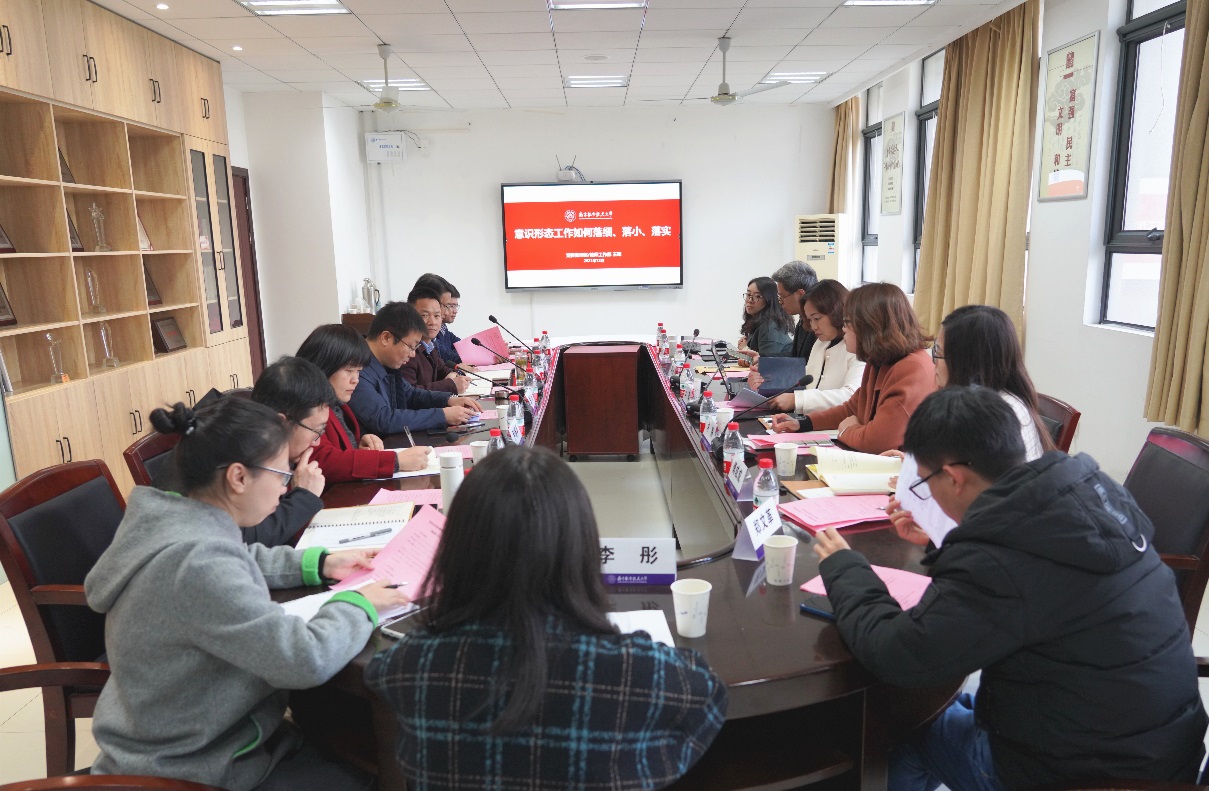 人文与社会科学学院党委书记楚广兴结合学院实际情况,从守牢阵地、防范风险、压实责任三个方面提出了进一步改进和加强学院意识形态工作的思路和举措。他强调,学院既要守好有形阵地,更要守好无形阵地;既要及时处置风险,更要主动预防风险;既要层层传导责任,更要层层压实责任。人文与社会科学学院院长、党委副书记高志宏,从国家安全法视角,结合学院专业和学科建设,从国家安全的概念、新的国家安全观的变化、法治视角下国家安全观的重要内容以及具体案例四个方面阐释了学院将以国家安全学科建设为背景,进一步推动意识形态工作与学院学科发展建设相融合的目标与策略。