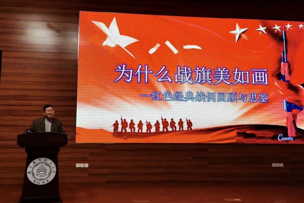 各研究生党支部与所联系的教工党支部共同参加《为什么战旗美如画》党史学习主题报告,通过军史学习党史,从主讲人鞠华将军讲述的五个经典案例中回望战争年代共产党员的大无畏牺牲精神和敢打必胜的坚定信念。英雄鲜血染红的战旗,诠释着信仰的力量,闪耀着理想的光芒,也深深感染着每一位党员师生。