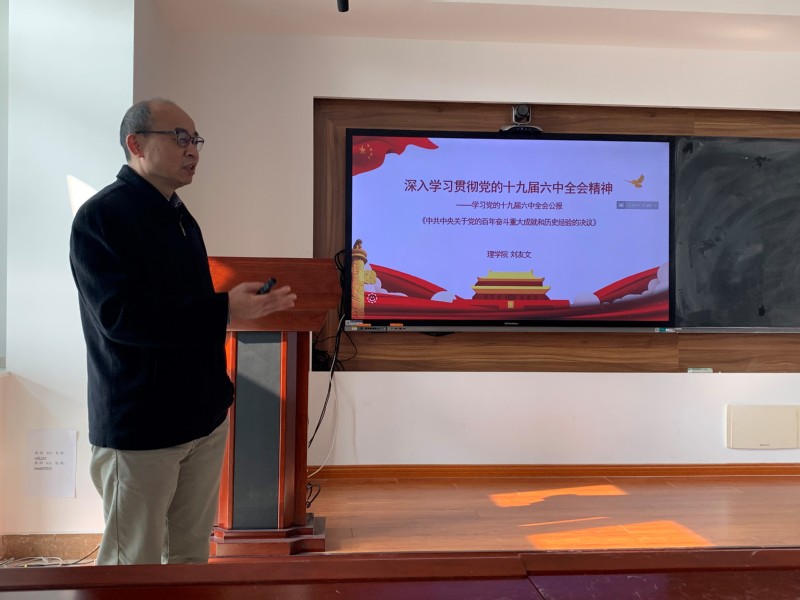 学院党委委员刘友文为联系的物理专业硕士生党支部讲授《深入学习贯彻党的十九届六中全会精神》专题党课,以时间为主线系统讲述了党在不同历史时期的伟大改革和成功经验,并介绍了《中共中央关于党的百年奋斗重大成就和历史经验的决议》的历史背景、主要内容和重大创新,着重强调了坚持科技创新是“十个坚持”中“坚持开拓创新”的重要组成部分,鼓励同学们做好理学基础研究,为祖国科技创新、原始创新贡献力量。
